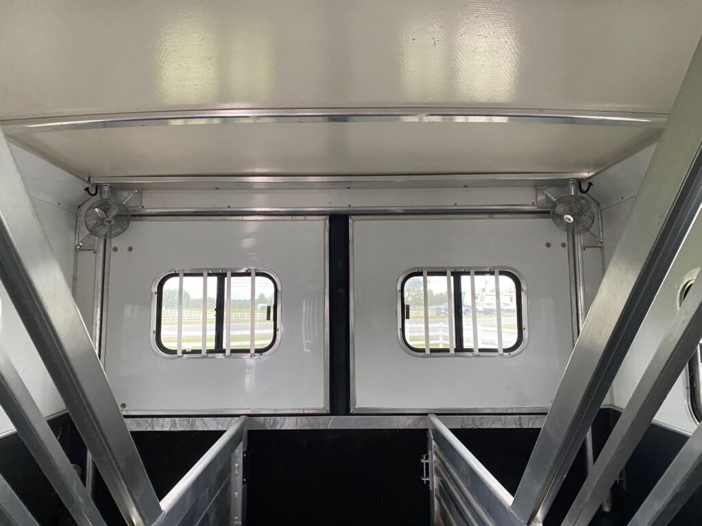 This used 6 horse trailer for sale prioritizes horse safety and comfort with premium interior features: